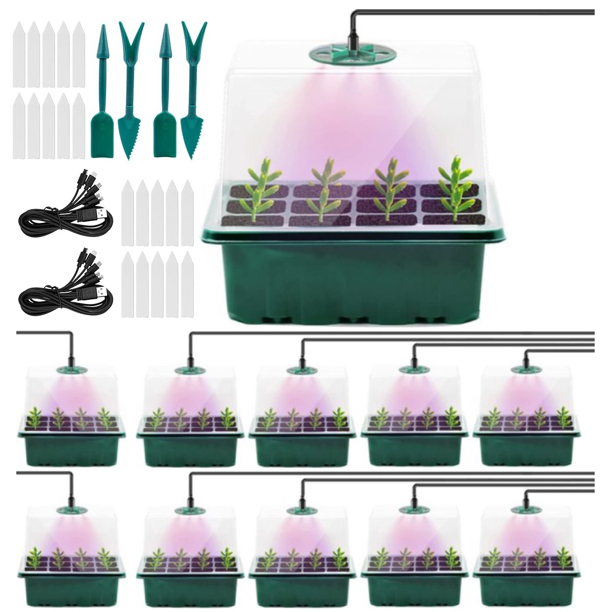 10 Pack Kweekbakken met TORENKAP en LED voor 120 zaailingen