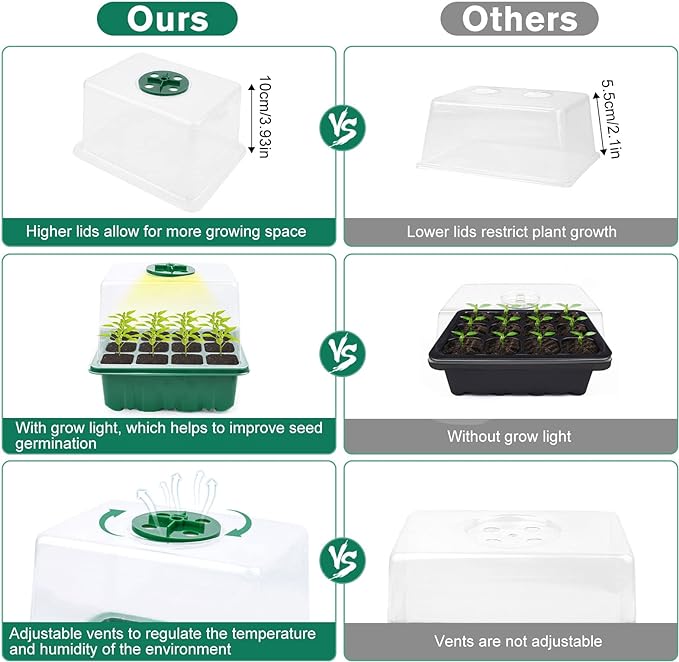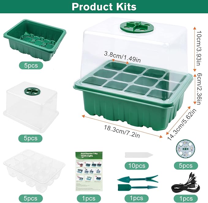 10 Pack Kweekbakken met TORENKAP en LED voor 120 zaailingen , een compleet kweekset dat een weelderige moestuinervaring mogelijk maakt! Of je nu een ervaren tuinier bent of net begint, deze kweektafel met verstelbare ventilatie en accessoires biedt de perfecte omgeving voor jouw planten om tot volle bloei te komen.