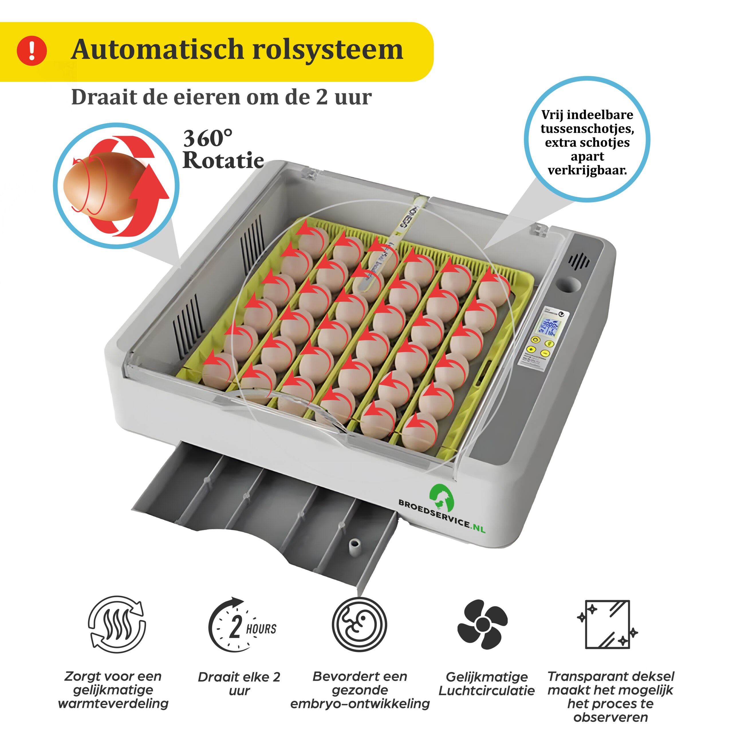 Onze geavanceerde 2e generatie broedmachine is voorzien van een reeks indrukwekkende functies: