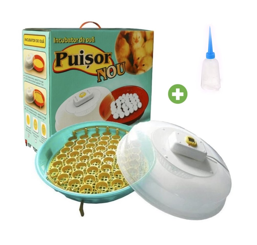 Gebruiksvriendelijke broedmachine met keersleutel voor het keersysteem PUISOR met temperatuur- en vochtigheidsweergave en met één keersleutel keren van alle eieren. De broedmachine is in de fabriek ingesteld en voorgeprogrammeerd om geschikt te zijn voor de meeste soorten pluimvee. Er hoeven geen instellingen te worden gewijzigd, wat het gebruik van deze broedmachine zeer eenvoudig maakt. Geen ruimte voor menselijke fouten, want het enige wat u hoeft te doen is de kanalen met water vullen, de machine op het stroomnet aan te sluiten en minimaal 1x en het beste 2 maal per dag de keersleutel draaien zodat alle eieren in één keer draaien. De temperatuur is standaard ingesteld op 38 graden Celsius. De vochtigheidsweergave herinnert u eraan wanneer u water moet bijvullen.