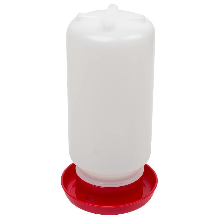 Drinkbak geschikt voor kwartels en kuikens. De drinkbak is gemaakt van PP/PP-Copolymer en heeft een inhoud van 1 liter. De drinkbak is door middel van een schroefsluiting te monteren aan de bodem.