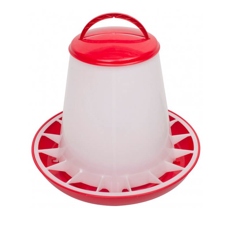 Een vrijwel onbreekbaar, sterk en flexibel voersilo voor pluimvee. De speciale vorm van de gril beperkt het morsen tot een minimum! Product wordt compleet geleverd met deksel.