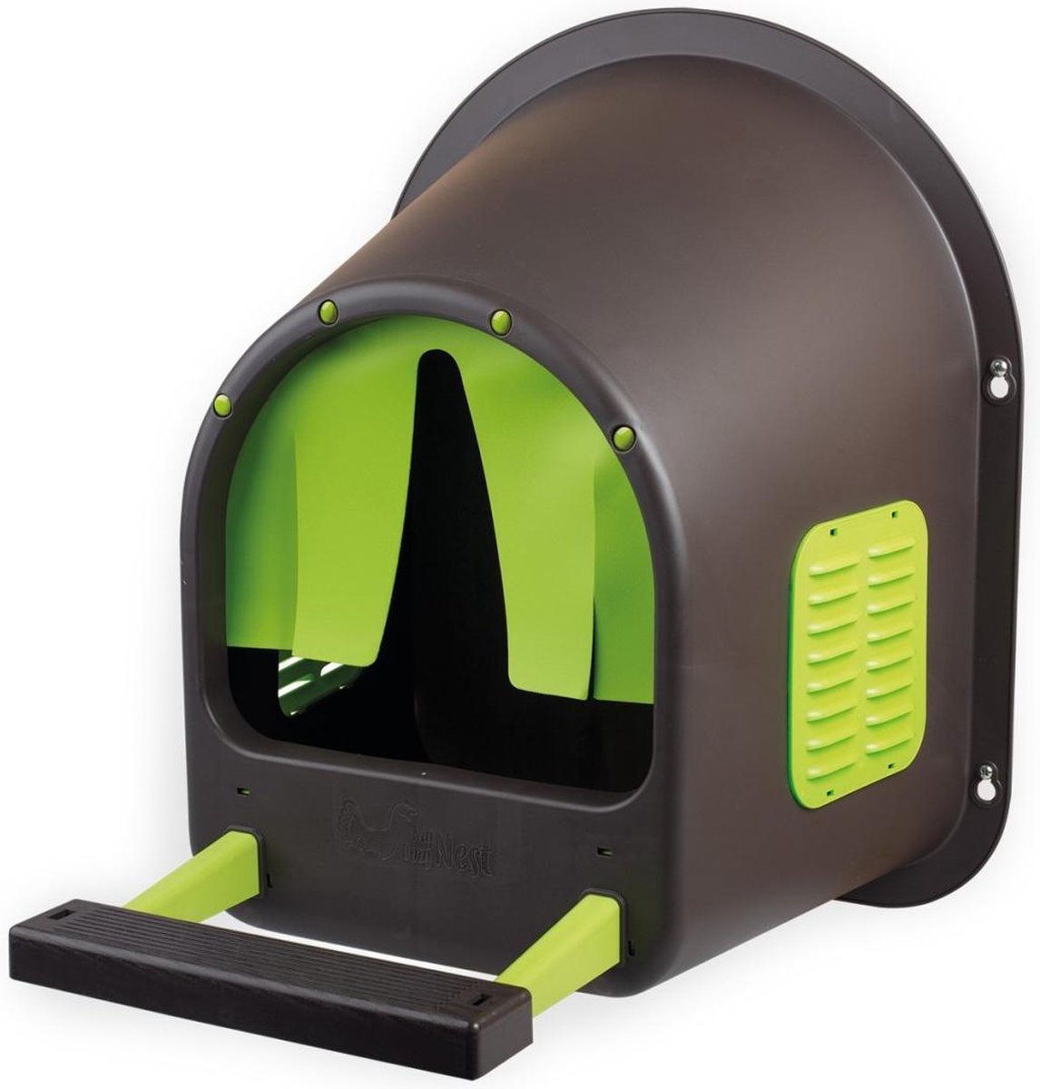 MyCozyNest betekent een comfortabele plek voor kippen van elke soort en maat. Het verduisteringsgordijn én de innovatieve ventilatieopeningen zorgen voor de benodigde donkere, beschutte plaats voor het leggen van eieren. Dankzij het gebruik van hoogwaardig slagvast polypropyleen heeft dit product een uitstekende levensduur. De vorm van het nest zorgt er bovendien voor dat deze zeer gemakkelijk schoon te maken is.