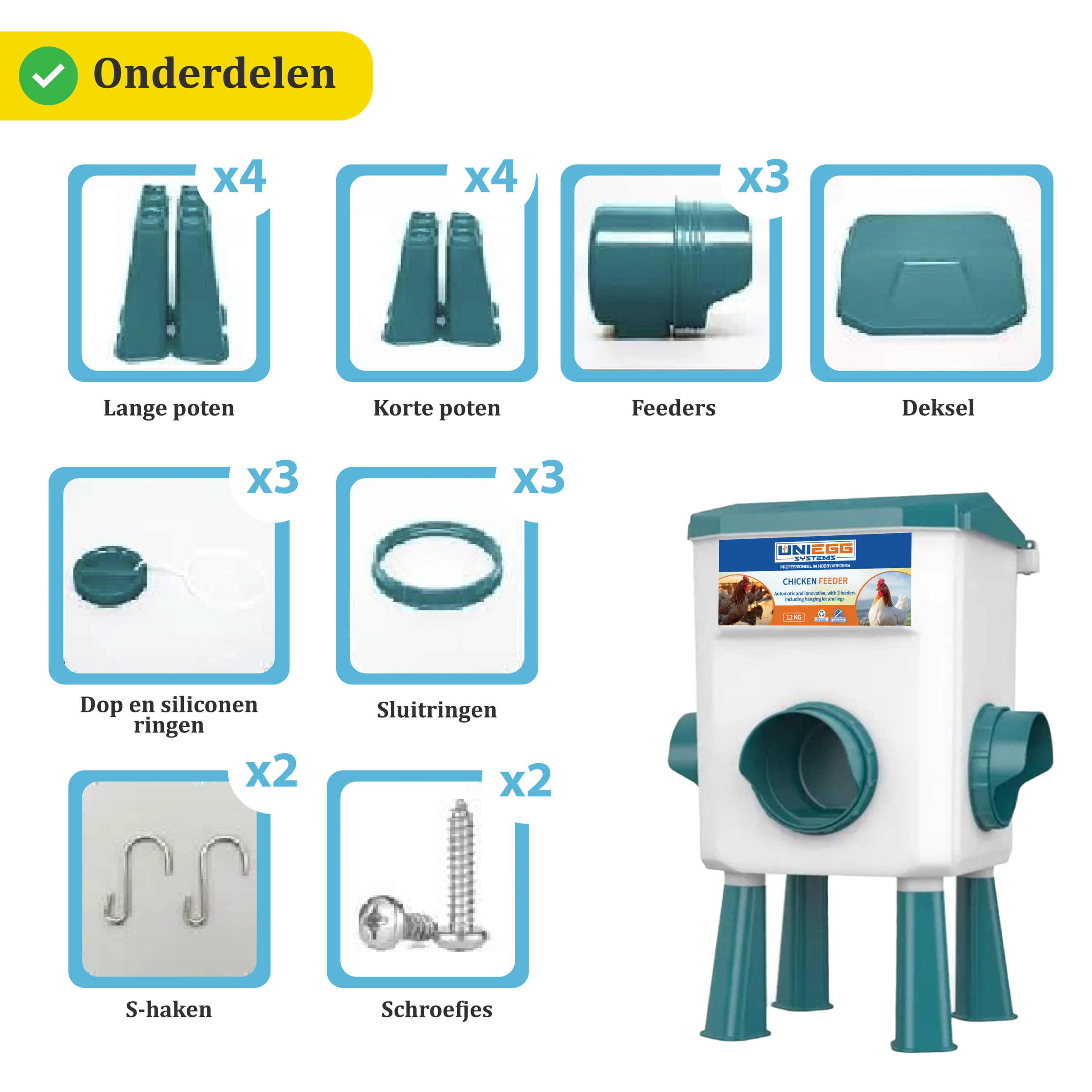 Ontdek het ultieme gemak met het Reservoir Voordeelpak: een perfect samengestelde combinatie van innovatieve voorzieningen voor uw pluimvee. Het pakket bevat de Reservoir Feeder – 12 KG en de Reservoir Drinker – 11 Liter , beide ontworpen met geavanceerde technologieën voor automatisch voederen en drinken. (Verkrijgbaar in het Groen en Rood)