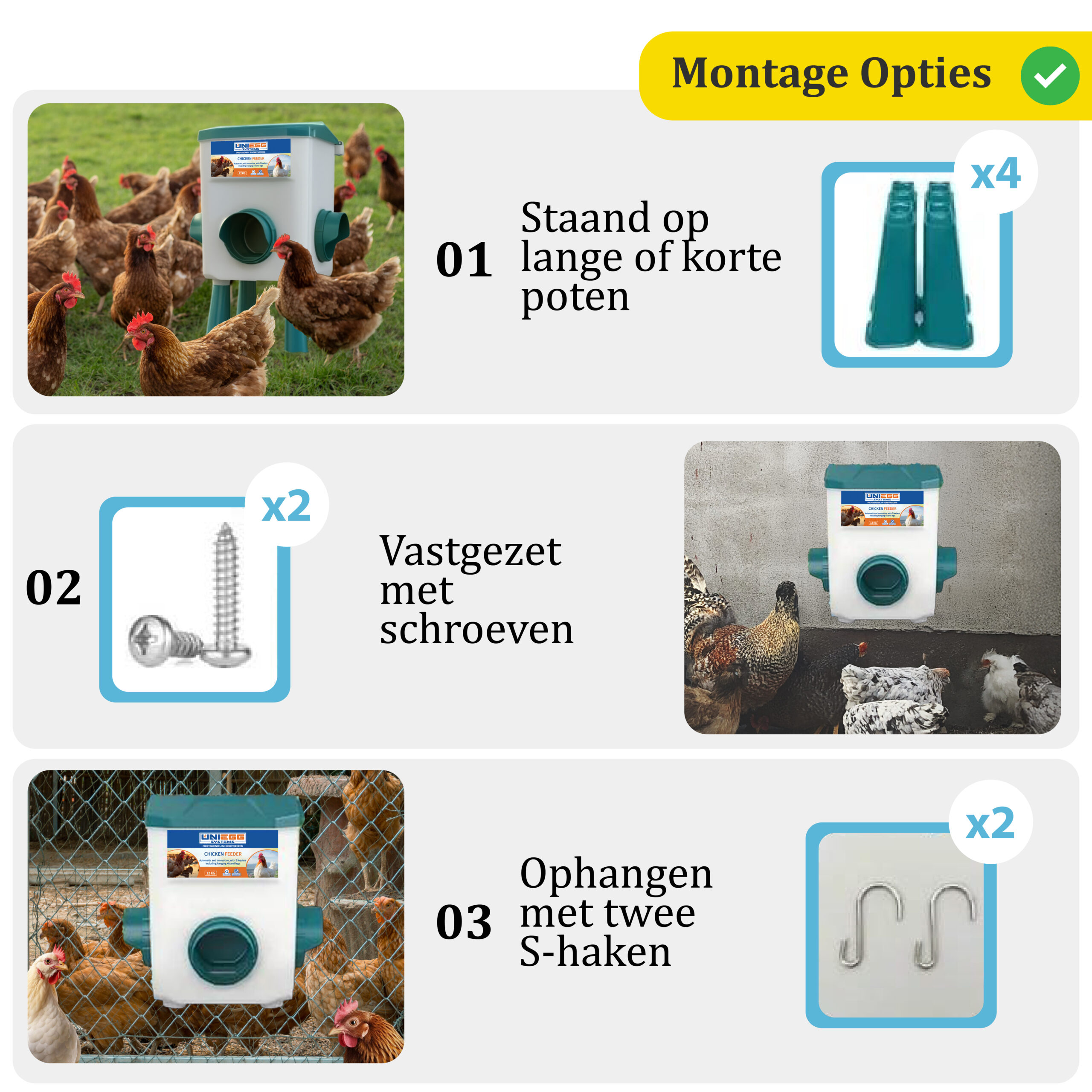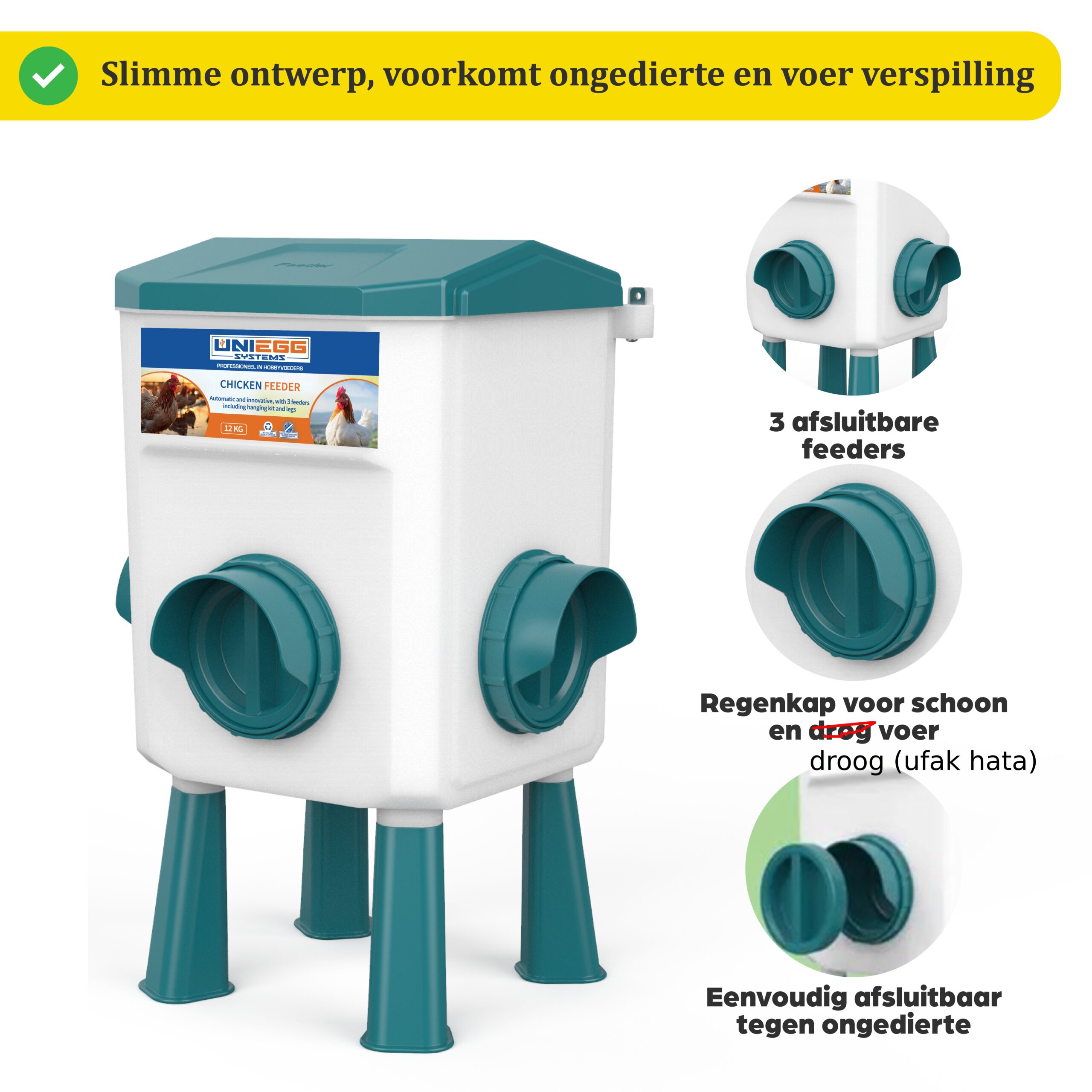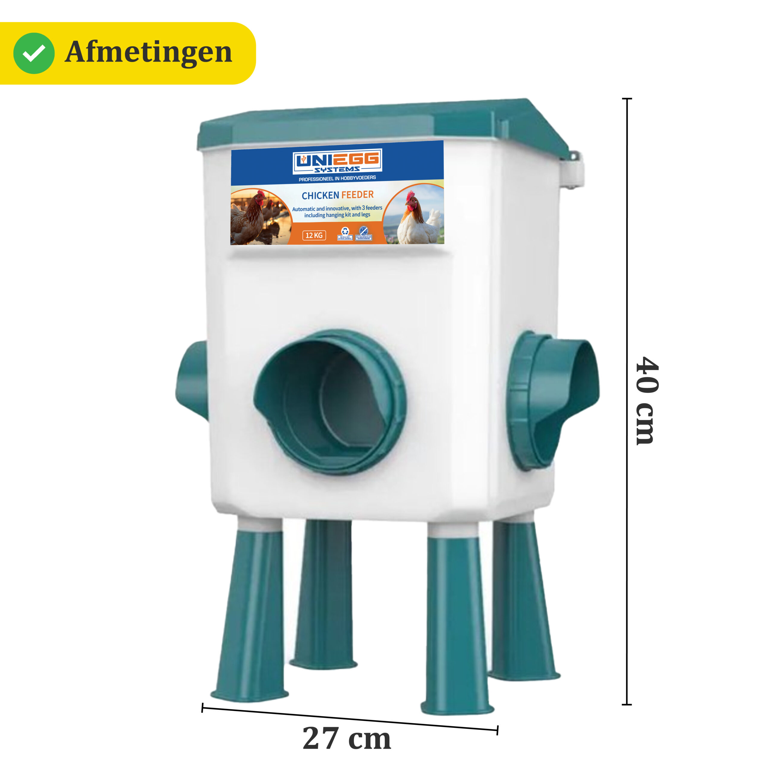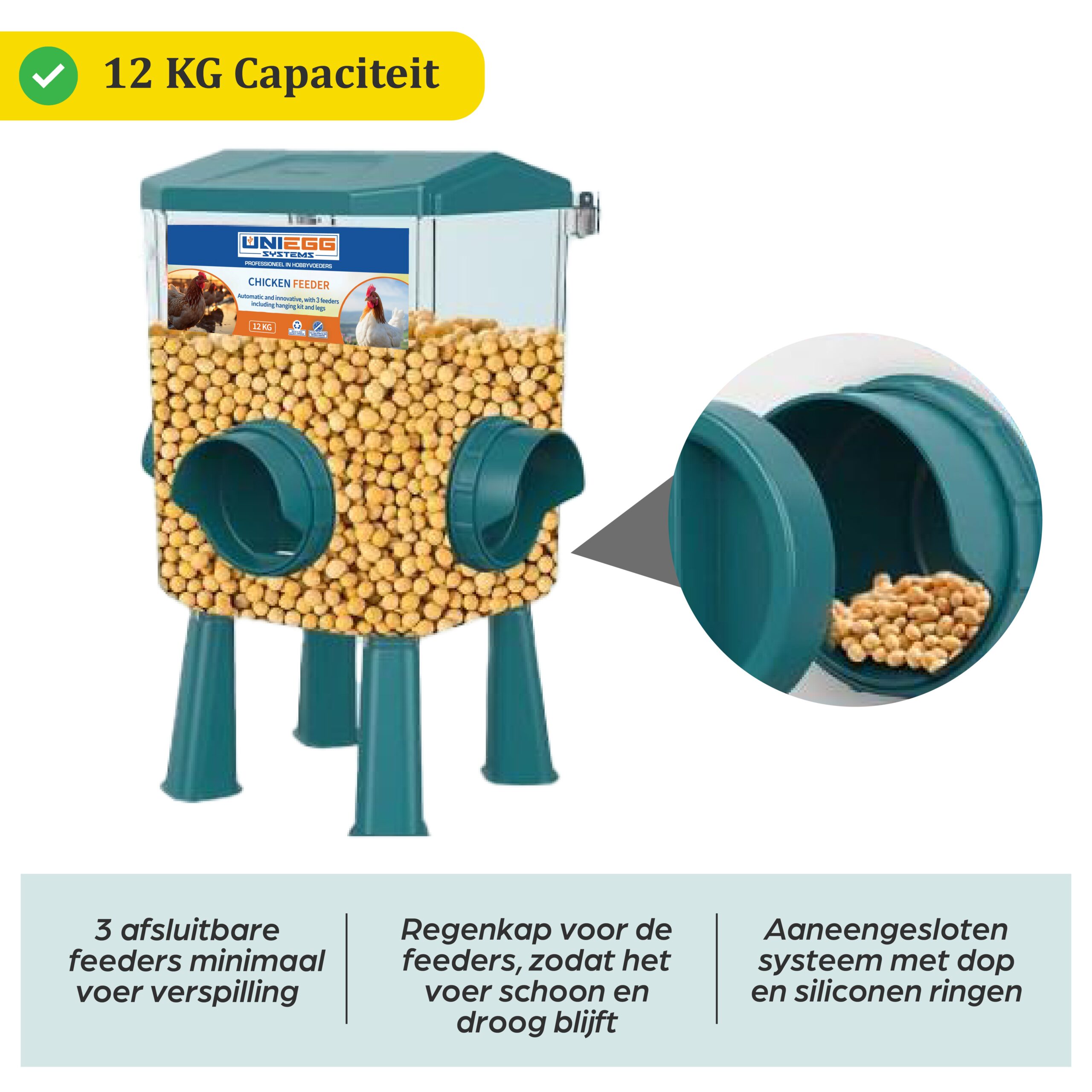 De Reservoir Feeder is meer dan alleen een voerbak. Met een royale capaciteit van 12 kg biedt deze feeder een gecontroleerde voedermethode zonder verspilling. Het unieke ontwerp zorgt voor natuurlijke toegang tot voer voor uw kippen, pluimvee, of eenden. De feeder is waterdicht en knaagdierbestendig, en door de verhoogde positie blijft de voeromgeving hygiënisch. Verbeter de voeding van uw pluimvee met de Reservoir Feeder en geniet van het gemak van automatisch voederen.