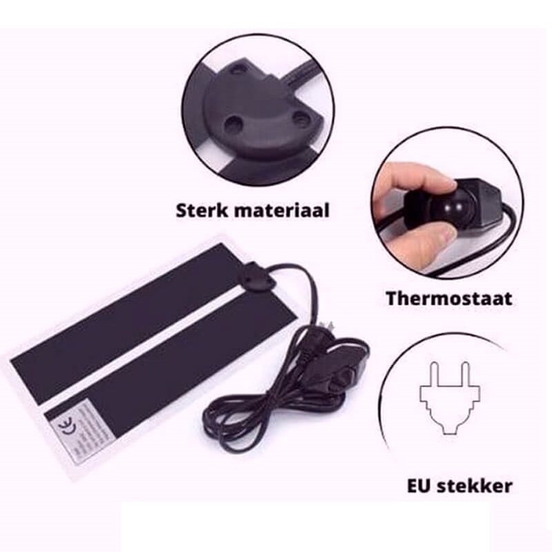 Deze warmtematten zijn ook geschikt voor andere diersoorten . Denk aan pluimvee, reptielen, amfibieën, kleine zoogdieren en aquariums. De mat heeft even de tijd nodig om goed warm te worden. Zet de mat voor gebruik eerst 30 tot 45 minuten aan zodat de maximale temperatuur bereikt is. De mat voelt met de hand wellicht wat koeler aan dan dat u zou willen maar zodra uw dier op de mat zit of ligt gaat al de warmte naar uw huisdier. U kunt dit zelf makkelijk testen door een kleedje over de mat te leggen dan voelt u hoeveel warmte de mat verzameld.
