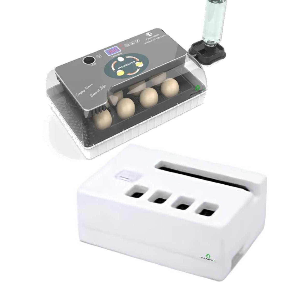 Onderdelen van de broedmachine.
